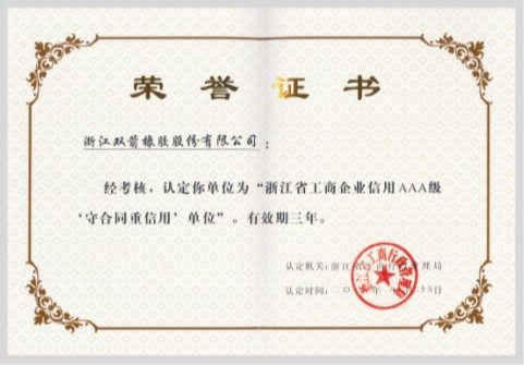 据悉,,,,,,,,浙江省工商企业“守条约、重信用”单位分A、AA、AAA三级,,,,,,,,由企业自愿申报后,,,,,,,,划分由县(市、区)、市、省工商局审核认定。。。。。。公司十分重视条约信用管理,,,,,,,,一直建设完善条约信用管理系统,,,,,,,,增进了企业康健稳固生长。。。。。。
